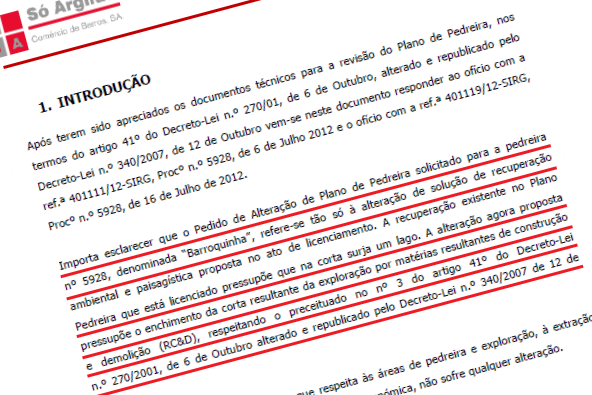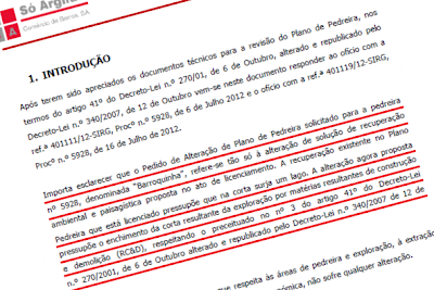 Mas o que maior estranheza causa, é o facto de o parecer técnico que sustenta a deliberação da câmara municipal ir além do interesse manifestado pela empresa intereressada na alteração do plano de pedreira.